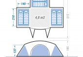Zelt für bis zu max. 6 Personen in drei Kabinen, mit der Black & Fresh