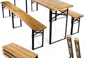 Mittig klappbare Bänke und Tisch auf praktische 110 cm