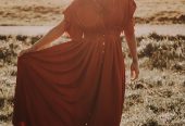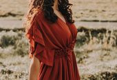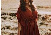 Boho Kleid in Rostrot mit Kordelzug unter der Brust, daher individuell größenverstellbar und auch für Babybauchshootings geeignet.
