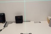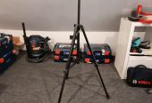 Vermietet wird hier ein Kreuzlinien Laser mit Stativ und Empfänger um auch auf größeren Entfernungen Höhen zu übertragen.