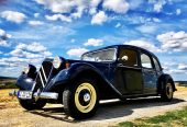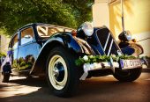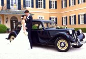 Unser Citroën 11CV “Familiale” ist die seltene Langversion der bekannten “Gangsterlimousine”. In der normalen Karosserieform wurde der 11CV von 1934 – 1957 gebaut. Aber nur in den letzten vier Produktionsjahren wurde dieses sehr beliebte Hochzeitsauto in der längeren Variante angeboten. Damit entsteht für die hinteren beiden Fahrgäste ein mehr als großzügiges Platzangebot.