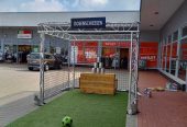 Dosenschießen ist eine etwas andere Fußballattraktion und vielen bereits aus Fernsehshows bekannt. Bei diesem Spiel geht es darum, mit dem Fußball die aufgetürmten Dosen abzuräumen. Das klingt zunächst einfach, bis man vor den aufgetürmten Dosen steht und nach unten auf seinen Fußball schaut. Unser Tipp: Nicht lange nachdenken, einfach versuchen! Dann ist die Freude über einen “guten Schuss” umso größer. Die Netze an den Seiten unseres Schusskäfigs halten Querschläger und Fehlschüsse sicher auf. Das stabile und optisch ansprechende Traversensystem des Schusskäfigs kann zusätzlich mit Bannern für Werbe- und Sposorenbotschafet ausgestattet werden. Die Rückwandplane im Stadionlook und ein Rasenteppich runden diese Fußball-Eventaktion perfekt ab.