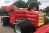 bietet Ihnen für Ihre Events eine aufblasbare Formel 1-Hüpfburg für einen Tag zur Anmietung an.