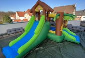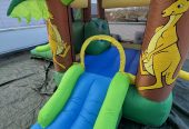 Unsere aufblasbare Hüpfburg verfügt unter anderem über ein integriertes Trampolin, 2 Rutschen, eine Kletterwand, eine Wurfscheibe und einen Ballkorb, für verschiedenste Spielmöglichkeiten und ist dabei sowohl für den Innen- als auch Außenbereich geeignet.