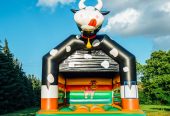 Vermiete Hüpfburg “Kuh” für verschiedene Anlässe wie z.B. Kindergeburtstag, Einschulung, Dorffest oder Firmenfeier.
