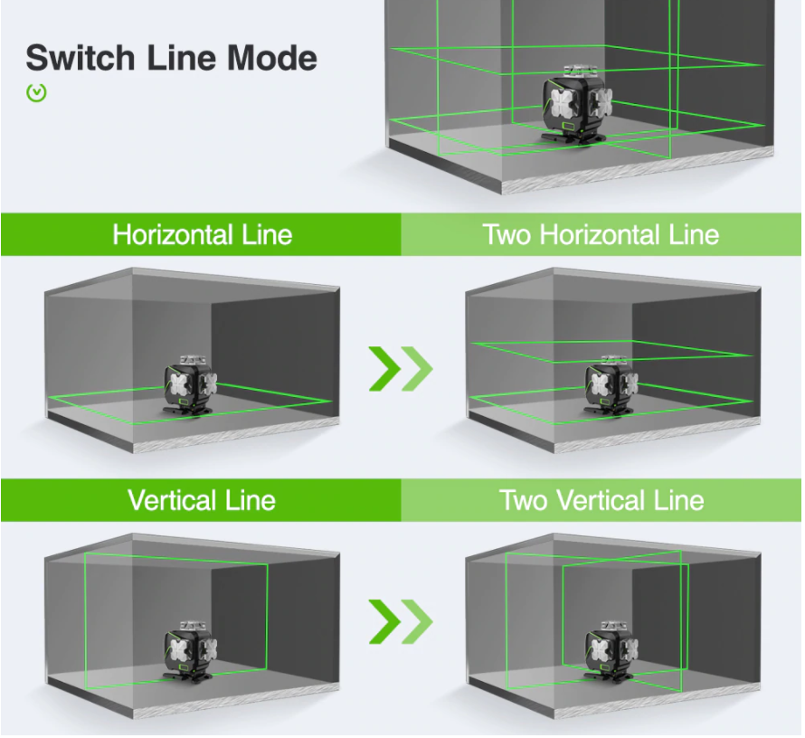 ● Projektion: 16 Grün Laser Linien