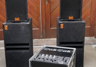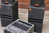 – Lautsprecher bestehend aus 2x 2-Wege Lautsprecher (je 400W) und 2x Tieftöner (je 800W)