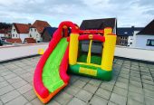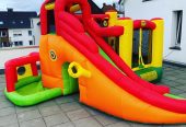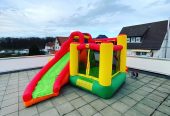 Diese Hüpfburg hat eine Grundfläche von 17,1 m². Wie in Peter Pans Nimmerland kommt hier keine Langeweile auf. Auf dieser Hopseburg kann nach Herzenslust gehüpft, geklettert, gerutscht, im Bällebad geplantscht werden, Basketball oder Dart gespielt werden. Diese Springburg ist mit einer extra starken Hüpffläche und großer Rutsche ausgestattet. Diese Hopseburg ist der “Star” auf jedem Fest. Besonders sicher ist diese Hüpfburg durch die seitlichen Fangnetze. Im Lieferumfang ist nicht nur die Hüpfburg enthalten, sondern auch das Gebläse, die Bodenanker und eine Tasche.