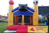 Egal ob, Fußball, Basketball oder Baseball – diese Hüpfburg verleiht als Thema alle Sportarten. Die Hüpfburg ist überdacht und bietet so einen effektiven Sonnenschutz. Im Preis enthalten ist das Gebläse, eine Vorlegematte, die Heringe sowie, wenn gewünscht, eine kleine Sitzbank.