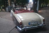 Herrlich restaurierter Mercedes von 1959. Solche Fahrzeuge konnten sich in der Wirtschaftswunderzeit nur Staatsmänner und reiche Unternehmer leisten. Hier haben Sie die Möglichkeit selbst einmal auf dem rotem Leder Platz zu nehmen und sich mit Chauffeur überall hin fahren zu lassen. Bestens geeignet für alle festlichen Anlässe wie Hochzeiten und Firmenfeiern. So ein Auto sieht man nicht alle Tage auf der Straße.