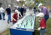 Der XXL Tischkicker bietet bis zu acht Personen gleichzeitig Platz und bringt somit noch mehr Spaß für Spieler und Zuschauer. Stellen Sie sich ihre Mannschaft zusammen und versuchen Sie im Team, so viele Tore wie möglich zu schiessen. An den Kickerstangen dieses extragroßen Tischkickers finden auch “Neulinge” schnell Spaß. Die Zuschauer können sich auf spannende Spiele freuen und fiebern bis zur letzten Spielminute mit. Wir haben zwei dieser XXL Kickertische auf Lager und unterstützen Sie auch gerne bei der Gestaltung Ihres Kickerturniers.