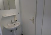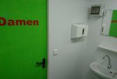 Das Damen Abteil ist ausgestattet mit zwei Toilettenkabinen, einem Waschbecken, Seifenspender, Papierhandtuchspender, Spiegel und einer Heizung.