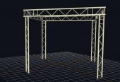 Traversenwürfel aus F32 Material von Global Truss. Ideal für ein Podium, für Produktpräsentationen, für einen Redner als “Rahmen” oder für Werbebanner. Wir nutzen den Käfig auch für Fußballattraktionen in Verbindung mit Netzen, einer Torwand oder einer Radaranlage.
