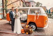 Der Begriff „Bulli“ ist übrigens eine Wortschöpfung aus „Bus“ und „Lieferwagen“. Durch die große Zahl an Sitzplätzen sind unsere beiden kultigen VW-Busse als ganz besonderes Hochzeitsauto für das Brautpaar, deren Trauzeugen und die Blumenkinder perfekt geeignet. Aber auch für einen nostalgischen Ausflug oder den Shuttle-Service einer kleinen Gruppe garantieren sie ein ganz besonderes Erlebnis. Genießen Sie die Aufmerksamkeit und die gute Laune der Ihnen zuwinkenden Passanten.