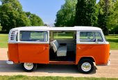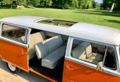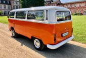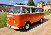 Der orange-weiße „Bulli“, der sich in der absoluten Kult-Farbe der 70er Jahre präsentiert, bietet Sitzplätze für bis zu acht Fahrgäste. Absolut selten – und wirklich ein echter Knaller – ist das große Schiebedach, das bei schönem Wetter ein traumhaftes Frischluftvergnügen garantiert. Anfang 1972 wurde unser beliebter Oldtimer von Deutschland nach Österreich exportiert. Seit 2019 ist er wieder zurück in seiner ursprünglichen Heimat und steht Ihnen, für Ihren ganz besonderen Anlass, mit Chauffeur zur Verfügung.